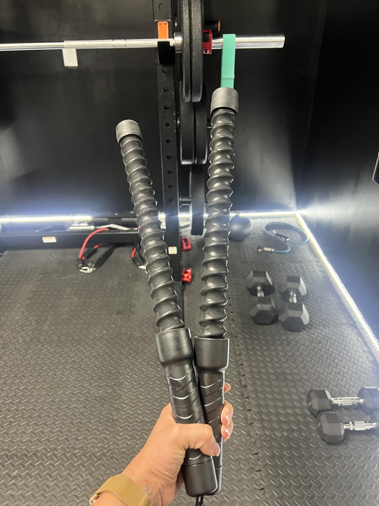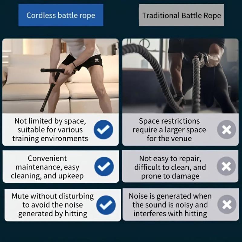 In contrast, traditional battle ropes are bulky, loud, and require serious space to set up. They’re great — if you’ve got a gym and a floor that can handle it.